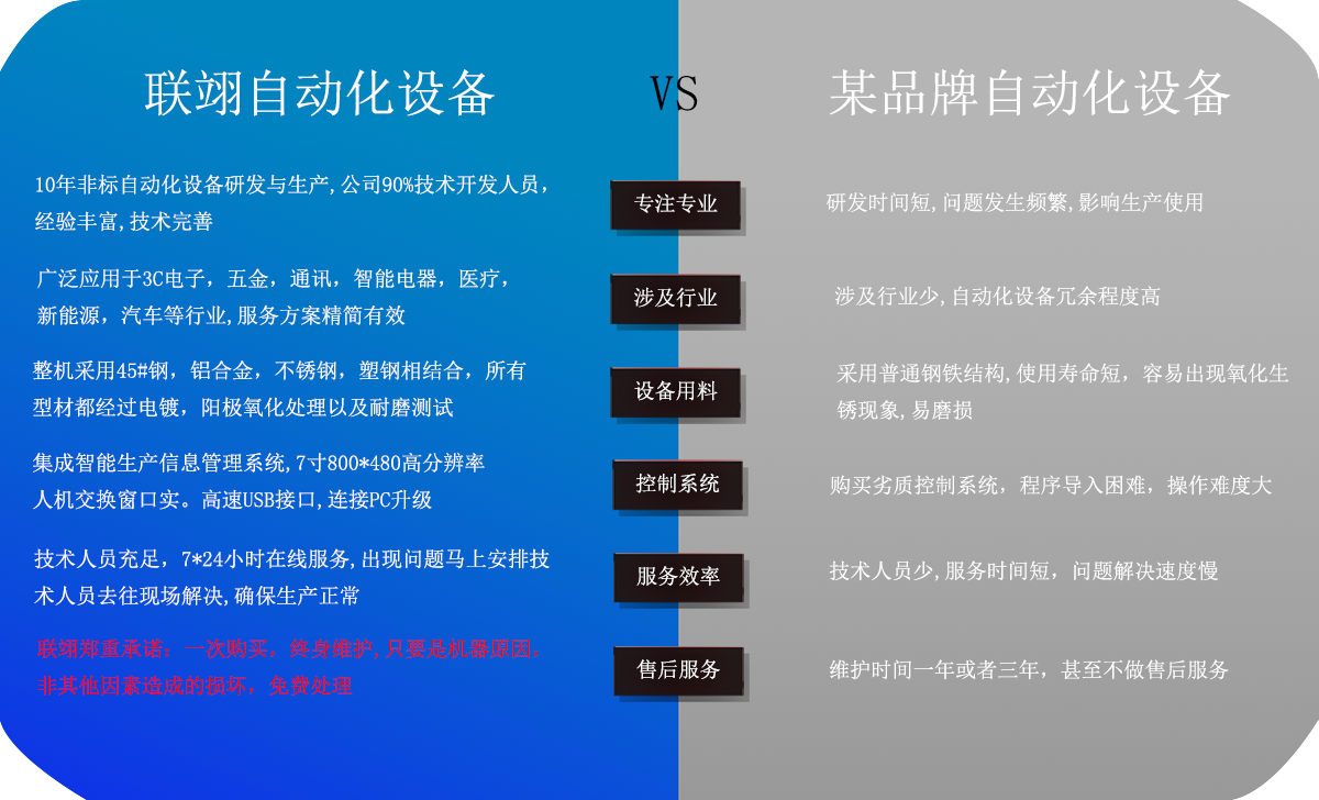 以后再說X東莞市聯(lián)翊智能設(shè)備科技有限公司創(chuàng)于2012年,專業(yè)研發(fā)制造自動組裝機,自動裝配線等非標(biāo)自動化設(shè)備.